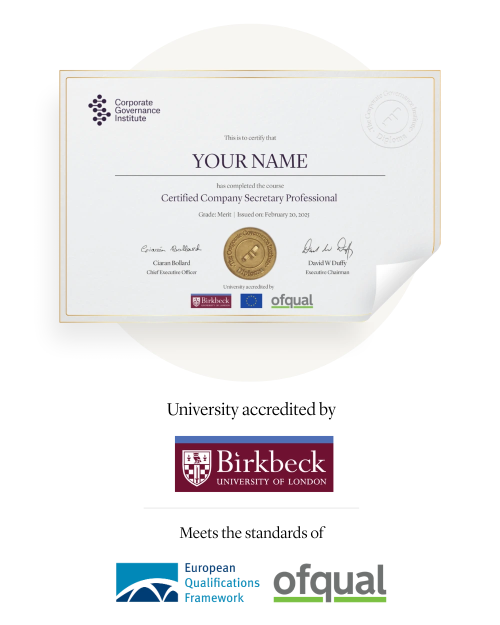 When you successfully complete the Certified Company Secretary Professional, you can use the post nominals CCSP on your digital signature and LinkedIn profile and you will receive a university validated Diploma in Company Secretary.